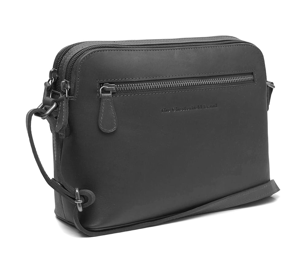 Läderväskan har en justerbar axelrem, vilket gör att du bekvämt kan bära den som crossbody-väska eller över axeln. Väskan har två rymliga huvudfack med dragkedja, vilket gör den både praktisk och säker.