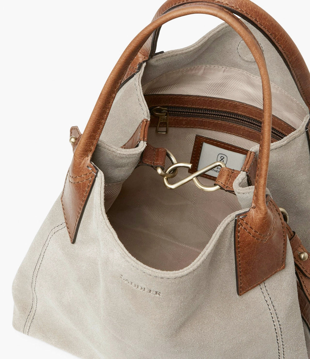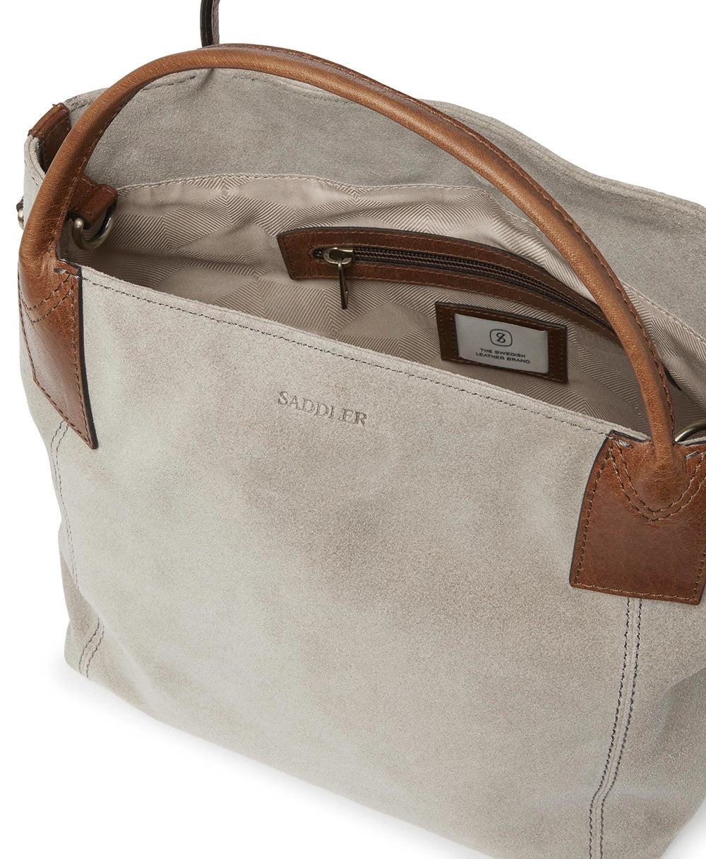 Inés Mini från Saddler är den stilrena toteväskan i mocka och läder som kombinerar elegans med en modern, tuff design. Som lillasyster till populära Inés toteväska är den här modellen det perfekta valet för dig som vill ha en något mindre, men lika snygg och funktionell väska.