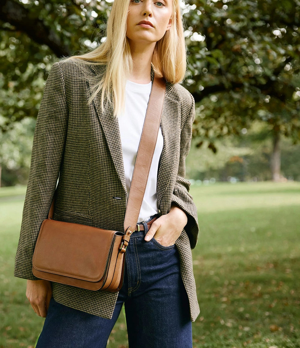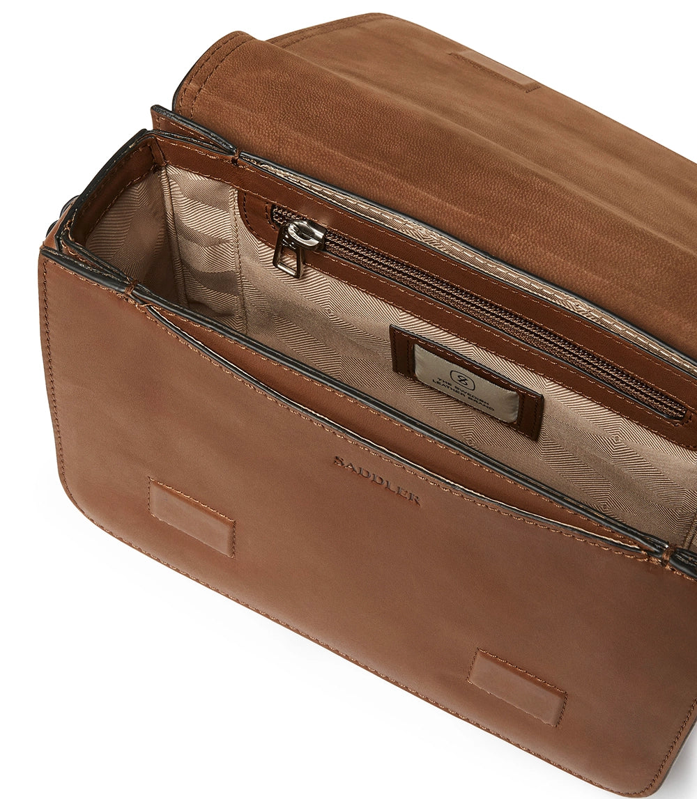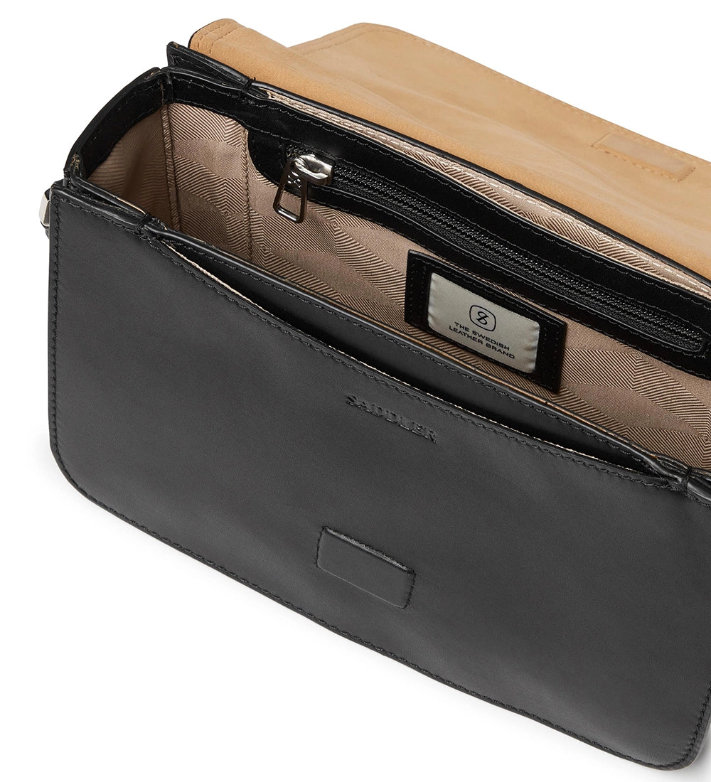 Fondi från Saddler är en tidlös axelremsväska i läder med elegant och sober design – skapad för kvinnan som uppskattar klassiskt hantverk och modern funktionalitet.