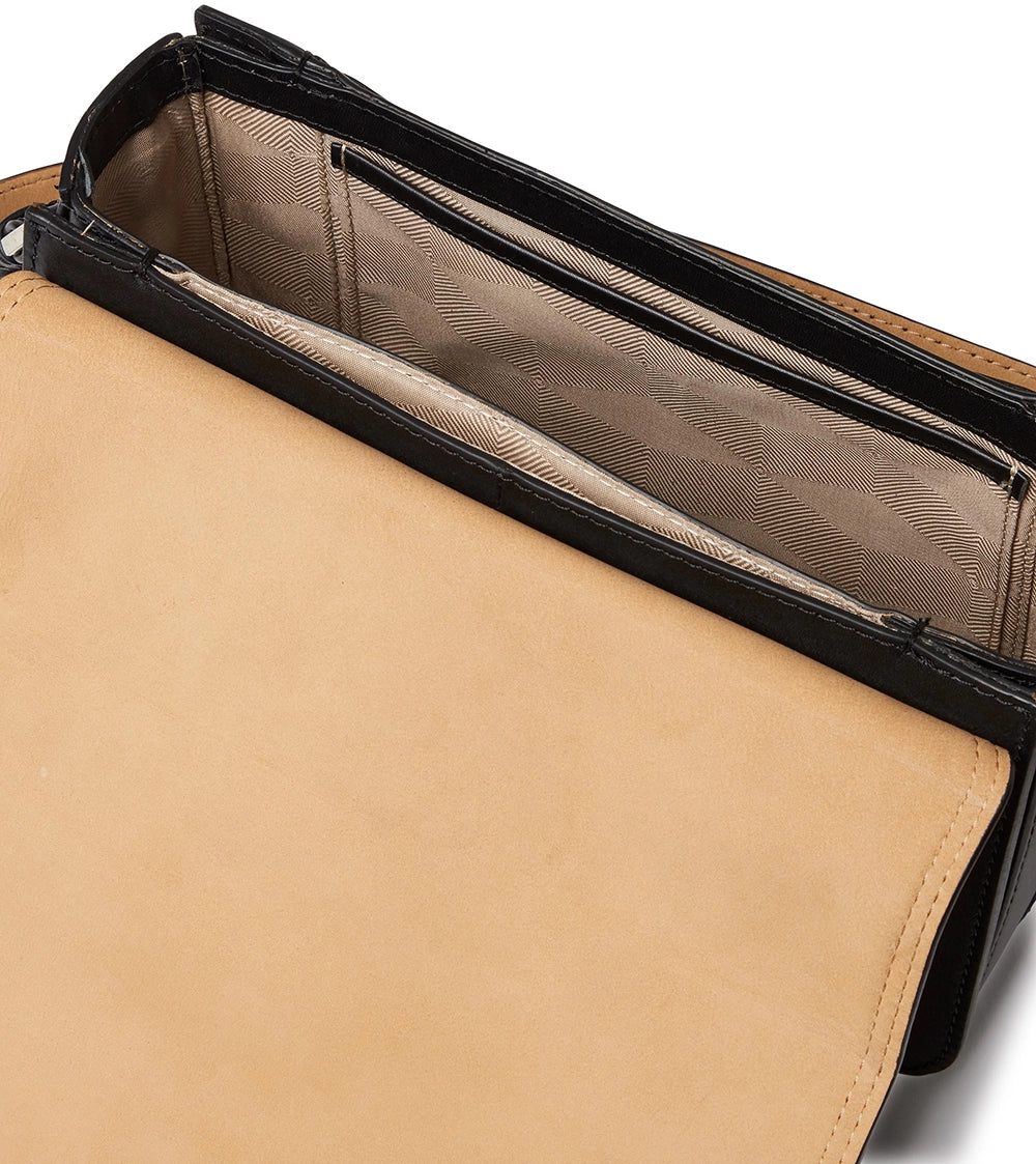 Tillverkad i mjukt, slätt full grain-läder av högsta kvalitet, får väskan en lyxig finish som bara blir vackrare med tiden. Den breda axelremmen i läder ger ett modernt uttryck och är vackert detaljerad med ljust getskinn på insidan av remmen och under locket – en exklusiv kontrast som förstärker väskans unika karaktär.