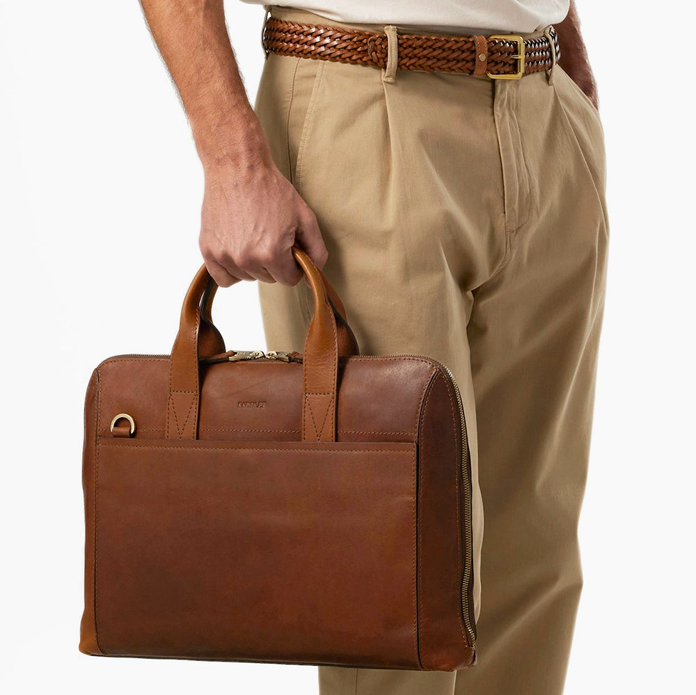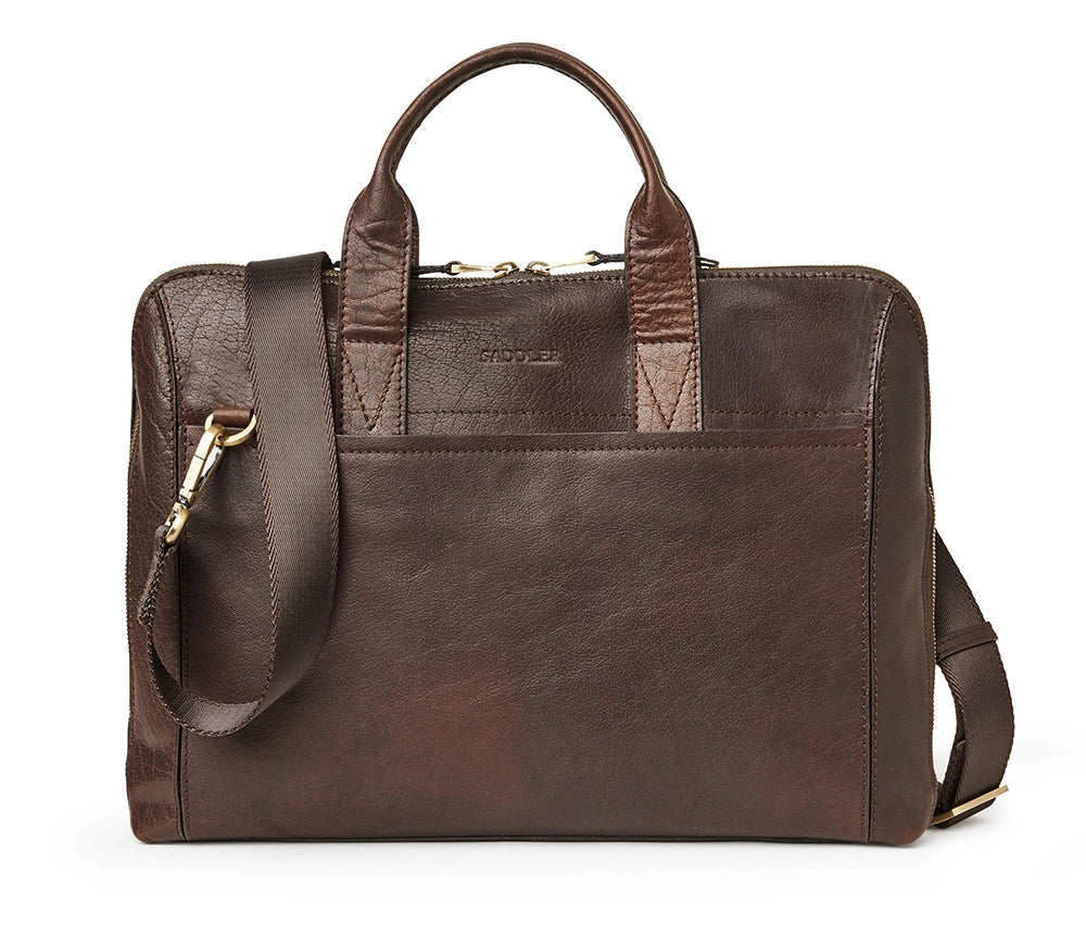 Gustav är den perfekta datorväskan för herr som söker en stilren portfölj i läder – idealisk för jobb, pendling eller affärsresor. En Saddler-laptopväska där klassiskt hantverk möter modern funktionalitet.