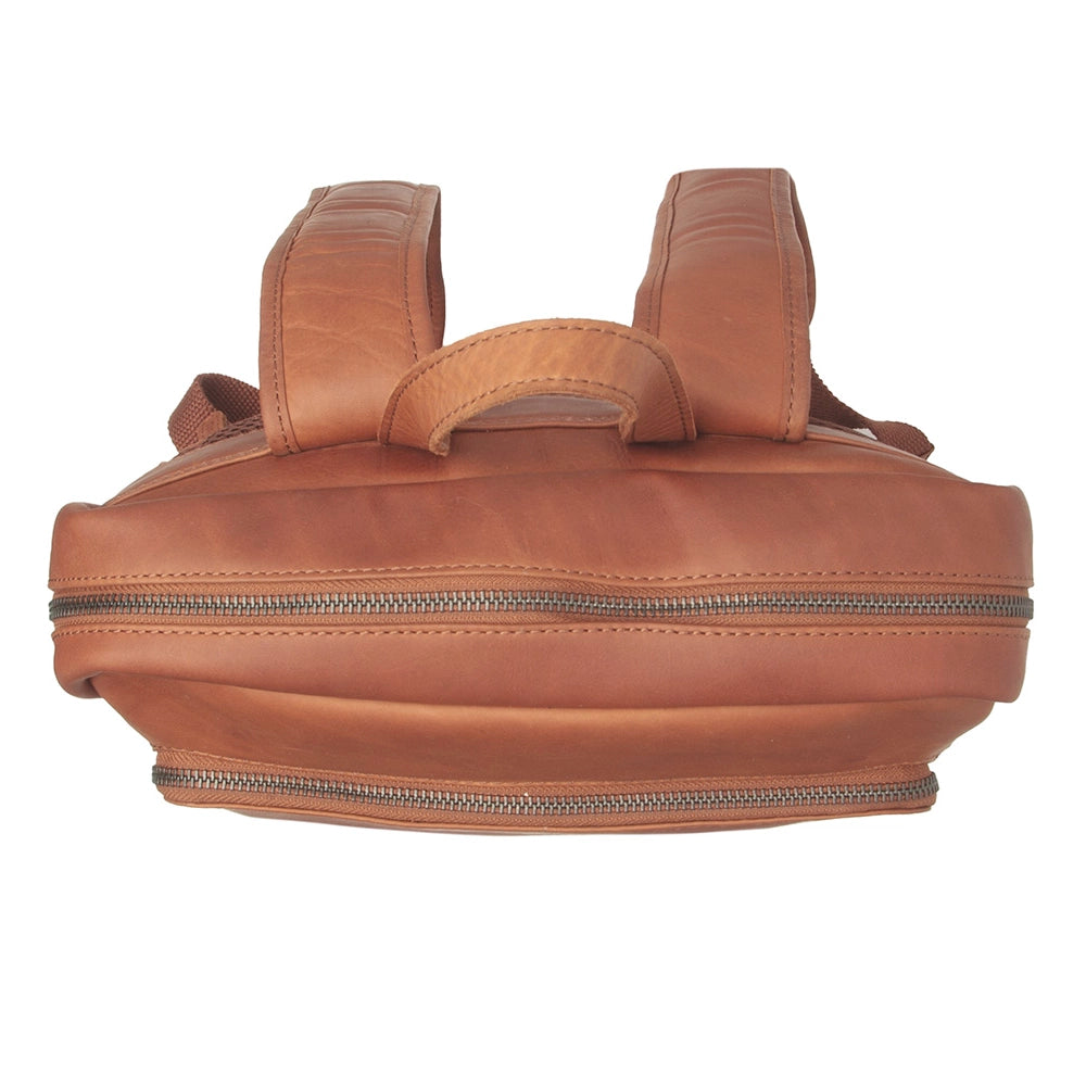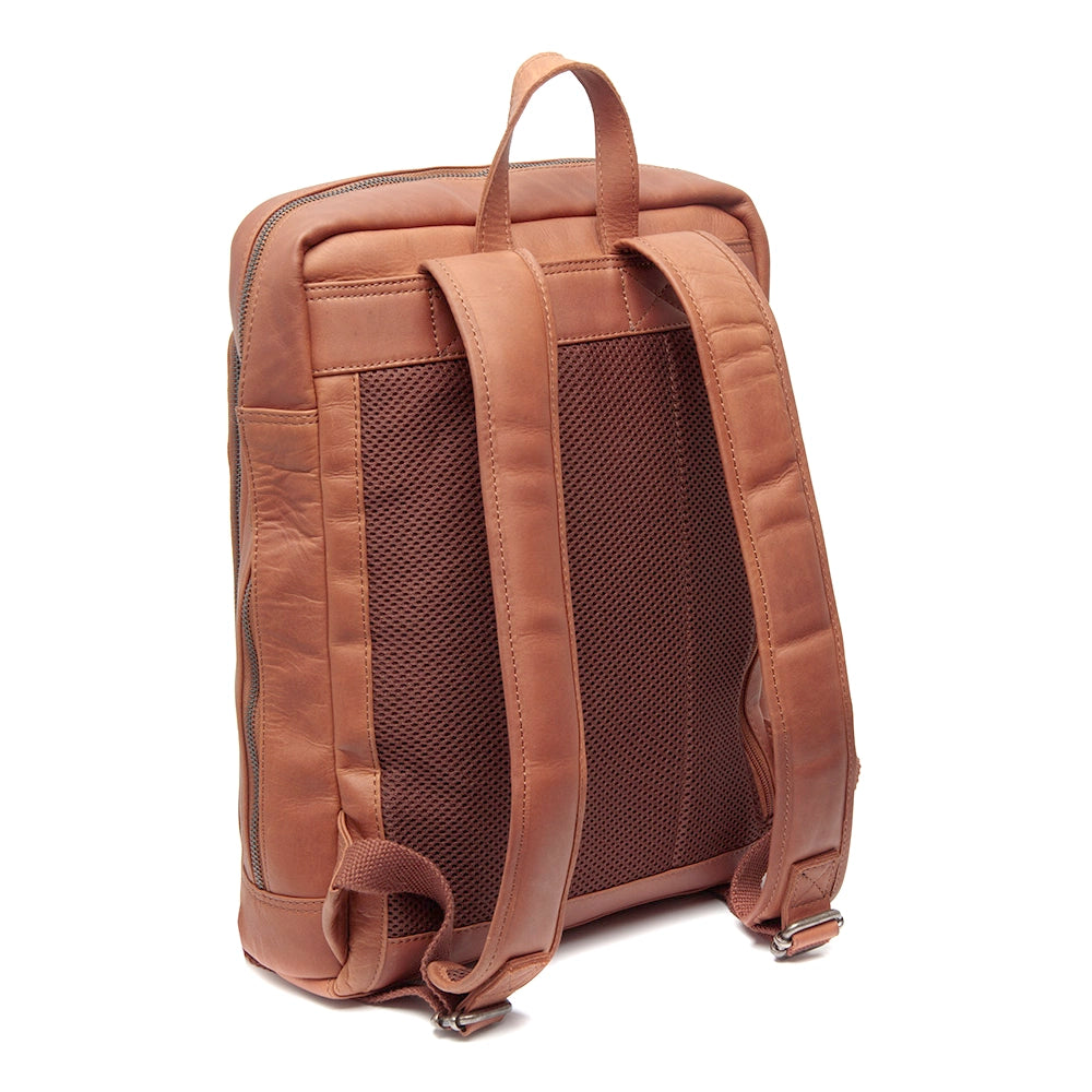 På framsidan av väskan finns en extra ficka med dragkedja som innehåller fack för två pennor och tre kort. På baksidan finns ytterligare en ficka med dragkedja för extra säkerhet och smidighet. Ryggsäcken är dessutom mycket bekväm att bära tack vare den förstärkta ryggpanelen. Denna läderryggsäck finns i färgerna cognac, svart och brun.